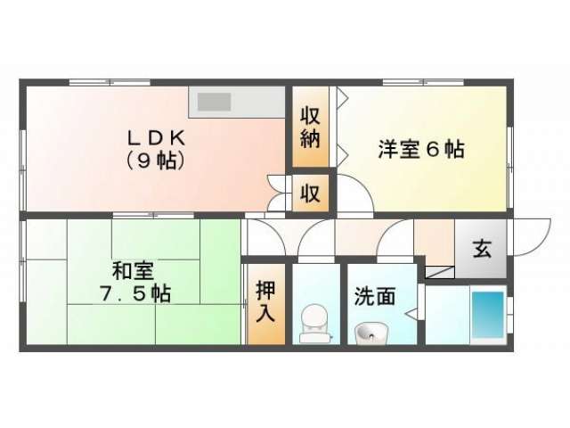 | 詳細間取 | 2LDK (和7.5帖×1、洋6帖×1、LDK9帖) | ||