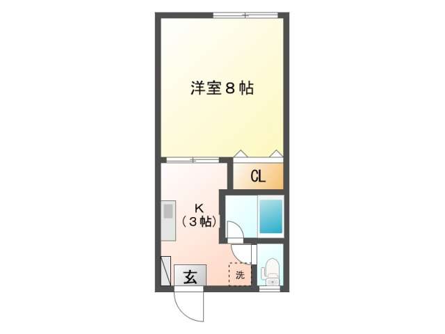 | 詳細間取 | 1K (洋8帖×1、キッチン3帖) | ||