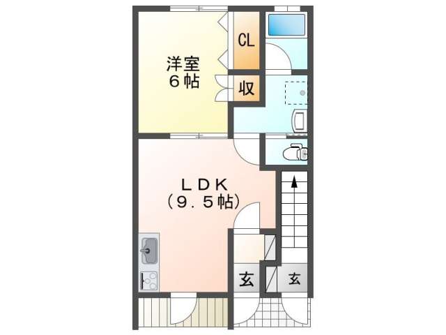 | 詳細間取 | 1LDK (洋6帖×1、LDK9.5帖) | ||