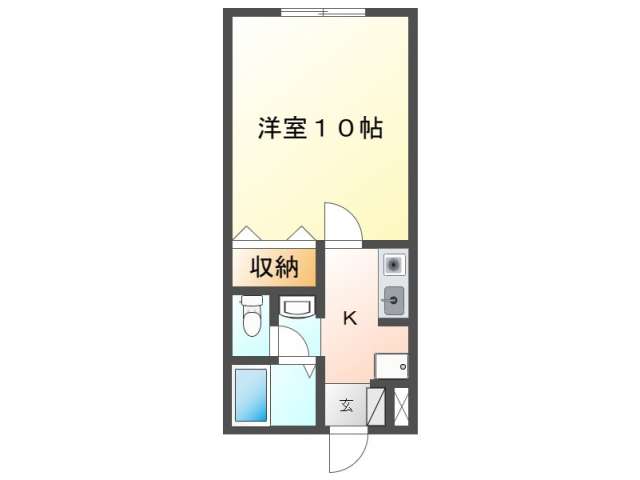 | 詳細間取 | 1K (洋10帖×1、キッチン3帖) | ||